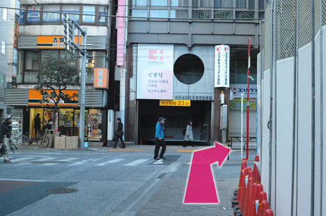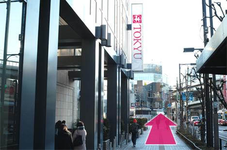 ❸ 茶沢通り沿いの歩道を右側に曲がって約20歩