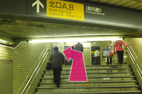 ❶ 改札を出て、北口A出口から地上へ