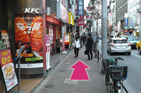 ❹ ケンタッキーフライドチキンを通過し。JTBから約25歩